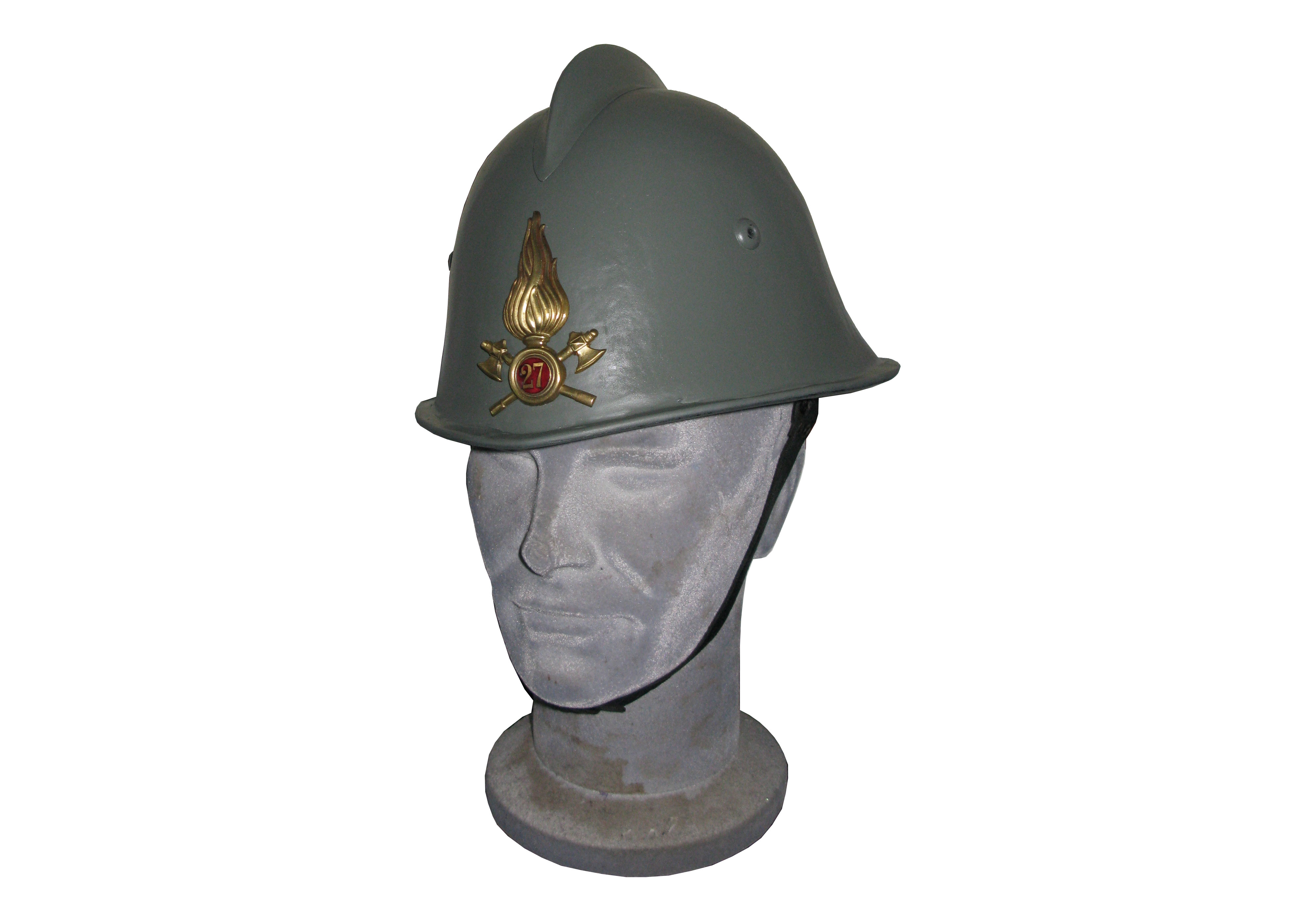La figura del Vigile del Fuoco nel periodo bellico è indissolubilmente legata a quest’elmo dalla forma inusuale, a tal punto da essere definita una “cornucopia rovesciata” da alcuni avieri inglesi abbattuti sul suolo italiano e soccorsi nei nostri Vigili.