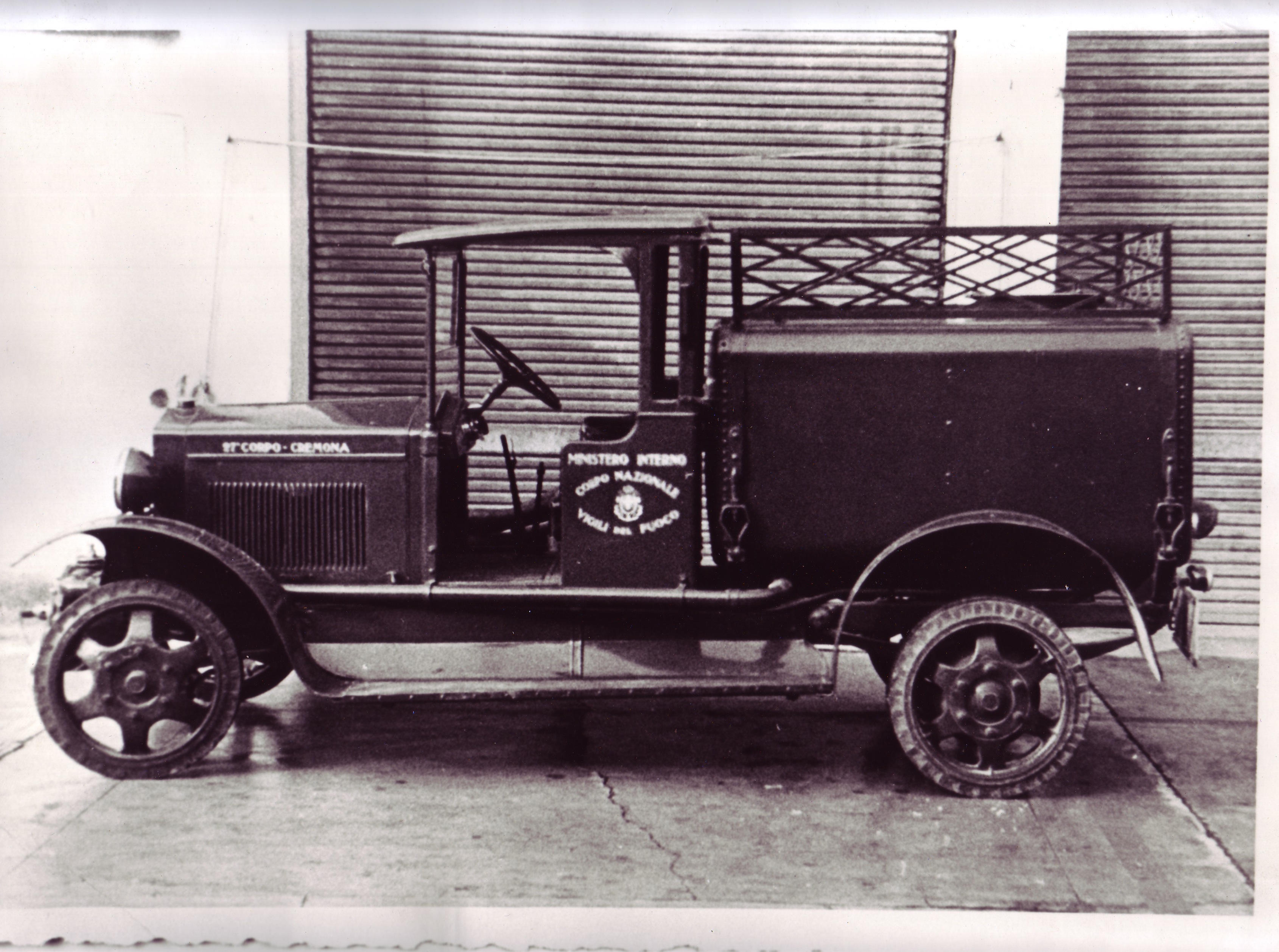Nel 1925 viene consegnata la prima vera autopompa di Crema, come molti mezzi simili dell’epoca aveva un carro appendice che trasportava la pompa per estinguere gli incendi.