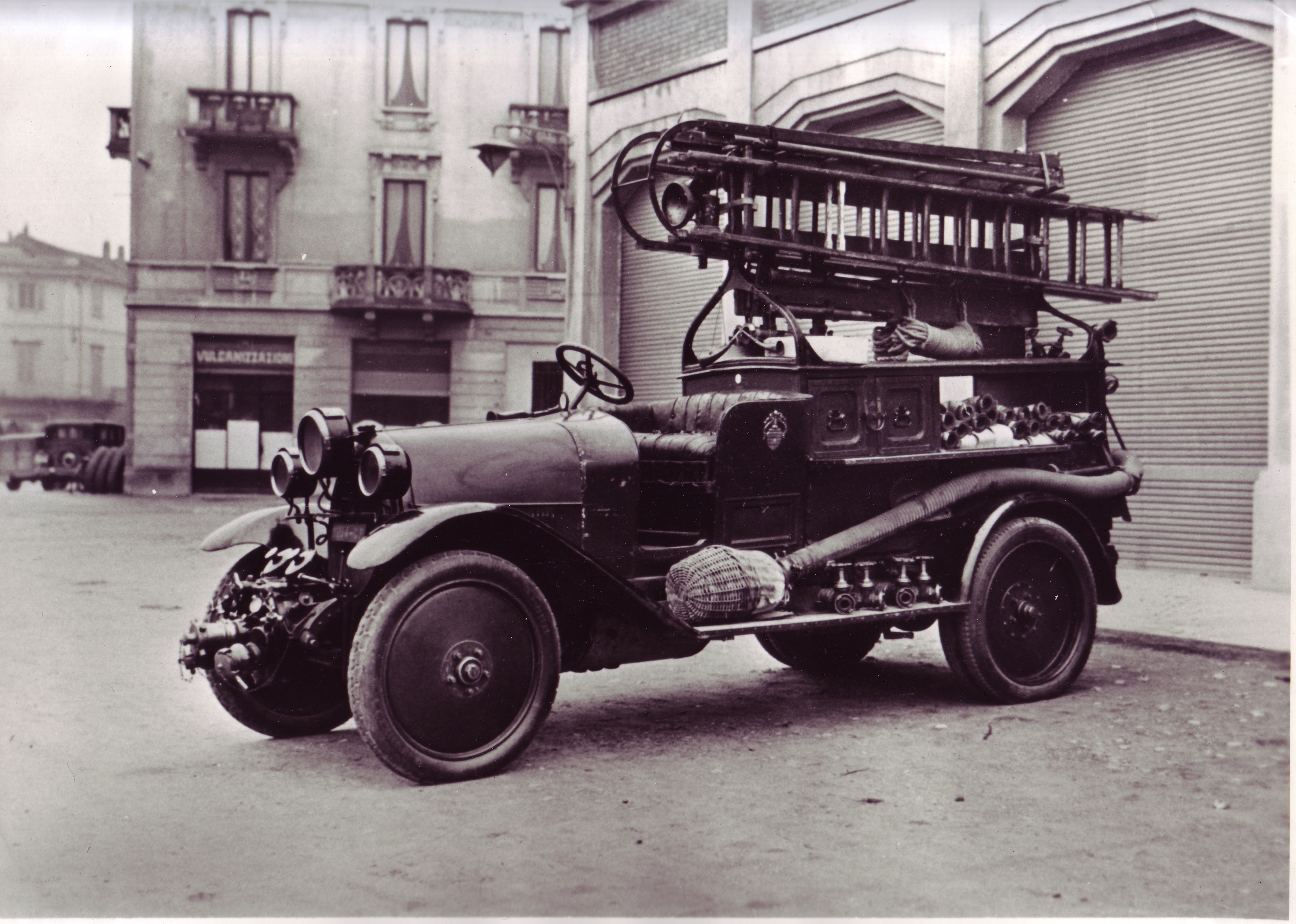 Alla nascita del Corpo Nazionale molti mezzi usati dai comuni avevano una doppia funzione, come questa autoinnaffiatrice usata anche per bagnare le strade non asfaltate. Avendo un grande serbatoio era utilizzata dai Civici Pompieri per estinguere gli incendi.